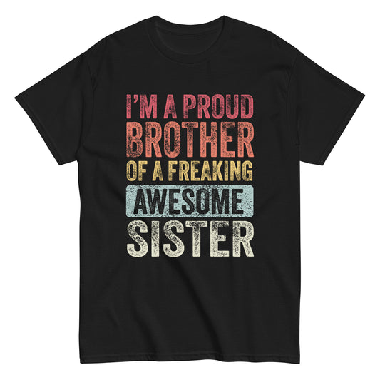 Vintage Funny I’m a Proud Brother of a Freaking Awesome Sister Retro T-shirt