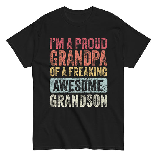 Vintage Funny I’m a Proud Grandpa of a Freaking Awesome Grandson Retro T-shirt